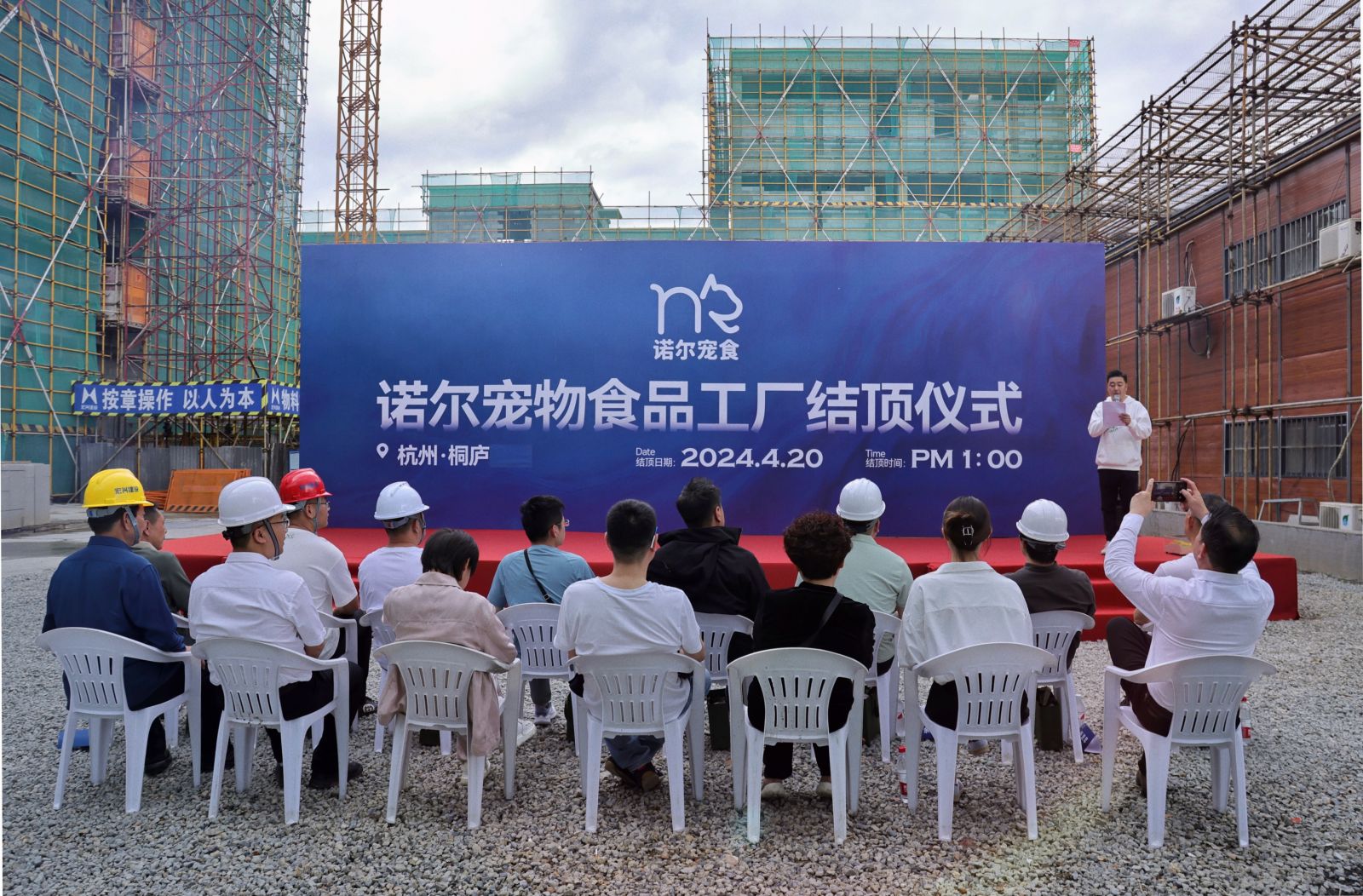 2024年4月20日下午,在桐廬縣橫村鎮,由杭州諾爾寵物食品有限公司投資興建,浙江宏興建設有限公司承建的“桐廬縣橫村鎮2023-1號工業地塊年產五萬五千噸寵物膨化凍干濕糧食品建設項目”結頂儀式順利舉行。公司董事長余良軍應邀參加本次結頂儀式。