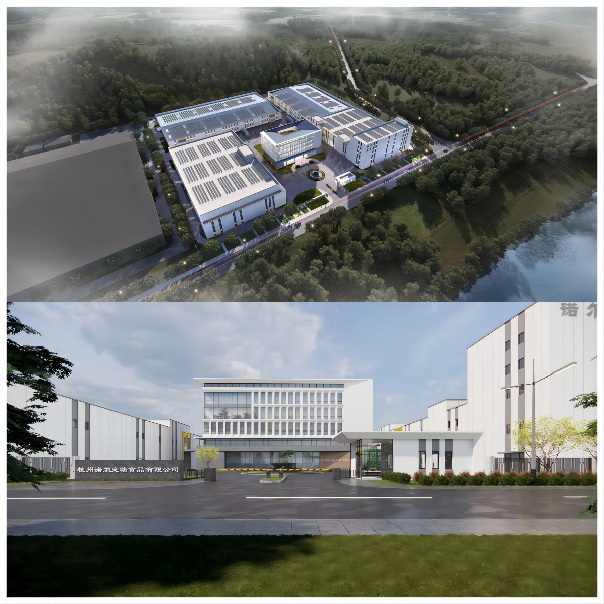 杭州諾爾寵物食品有限公司隸屬于杭州帕特諾爾寵物有限公司,是其全資子公司。公司專注于寵物營養健康領域的深入研究,密切追蹤國際寵物領域的前沿業態,致力于研發安全可靠,營養全面的高端寵物食品。本項目主要包括 1 幢綜合辦公樓及 4 幢生產車間,其布局科學嚴謹,功能完備。項目建設用地面積為41184.00㎡,總建筑面積為 44127.78㎡。