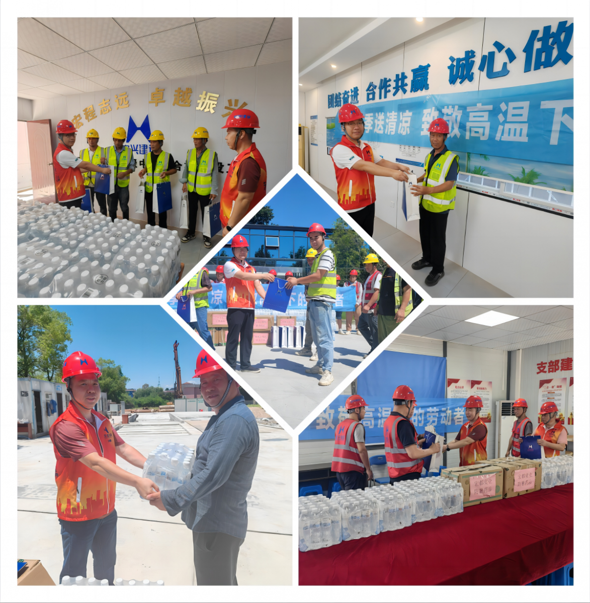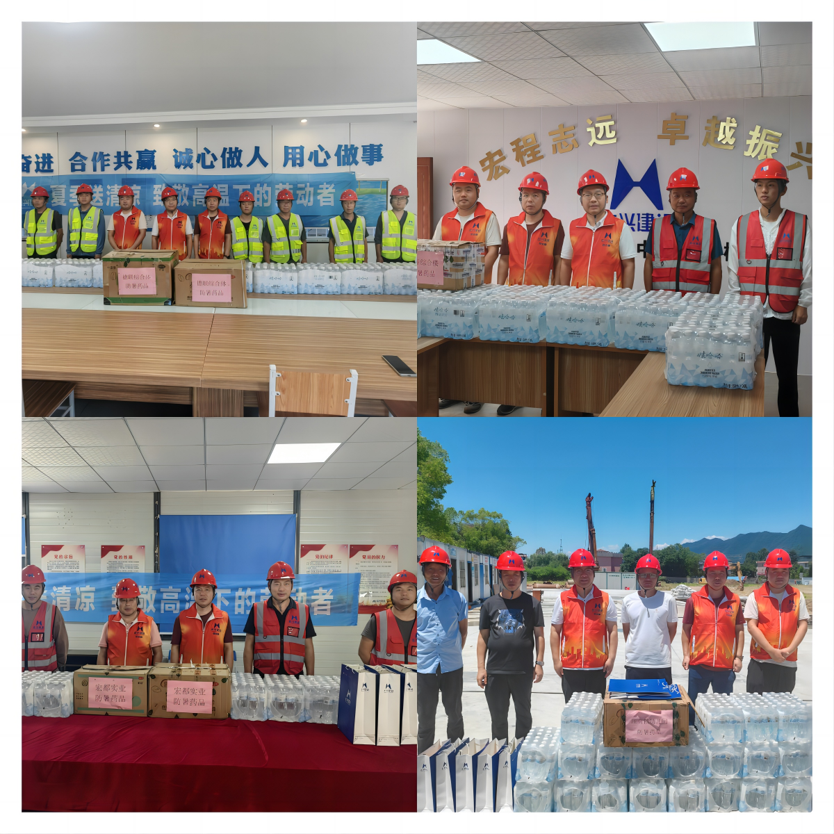 本次慰問活動走訪了喬林安置房、德聯(lián)綜合體、富春高級中學(xué)綜合樓、江南鎮(zhèn)幼兒園、宏都總部等縣內(nèi)在建項目,為對于距離公司總部較遠的項目,這份“清涼”均以快遞物流的形式傳送到每一個項目部。